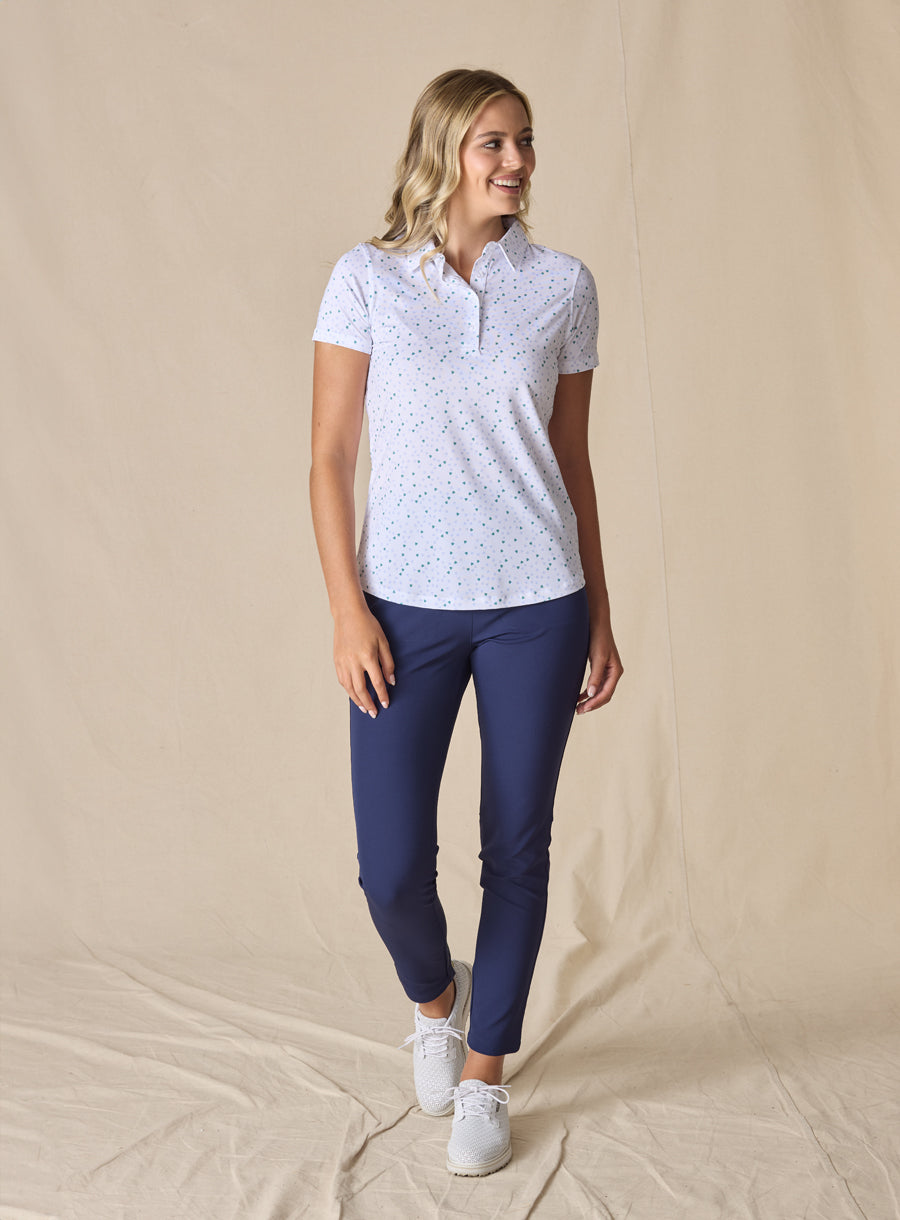 The Cupid Polo features a simple, cute heart print. Made from our signature performance knit fabric, it’s lightweight and breathable, perfect for cooler days on the course. With UPF 50+ protection, it shields you from the sun while offering both comfort and style. The shaped hemline adds a flattering touch when worn untucked and provides extra length to help keep the shirt tucked in while you play.